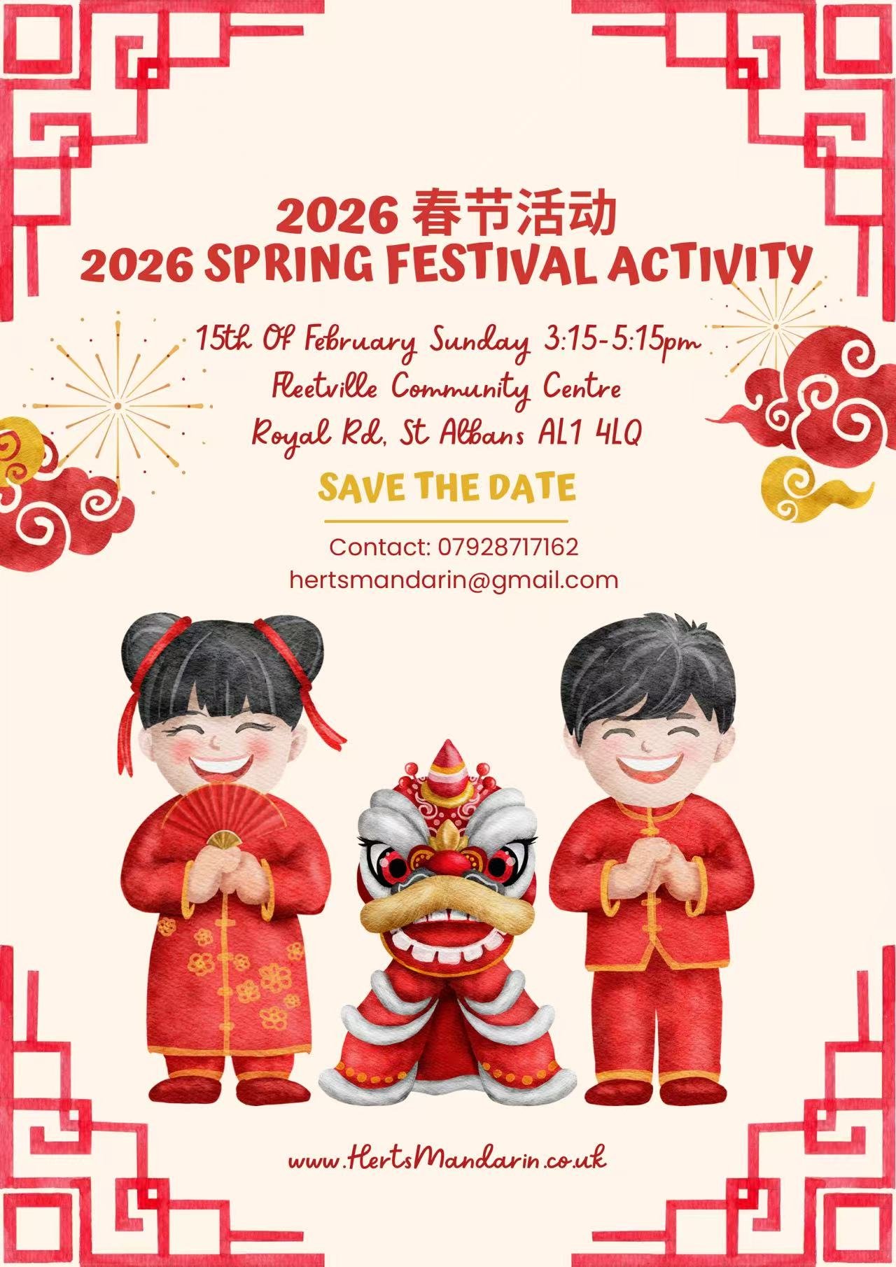 We look forward to seeing you and your family at the spring festival event in St Albans, please email to book your space with hertsmandarin@gmail.com